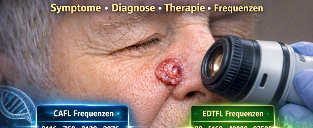 Frequenztherapie ist schulmedizinisch nicht anerkannt und ihre Wirksamkeit gegen Krebs ist wissenschaftlich nicht gesichert. Die hier genannten Frequenzlisten (CAFL/EDTFL) dienen ausschließlich Informationszwecken und ersetzen keine ärztliche Diagnose oder Behandlung. Bitte kläre jede Krebsverdachtsdiagnose und jede Therapieentscheidung mit Fachärztinnen/Fachärzten (Dermatologie/Onkologie) ab.