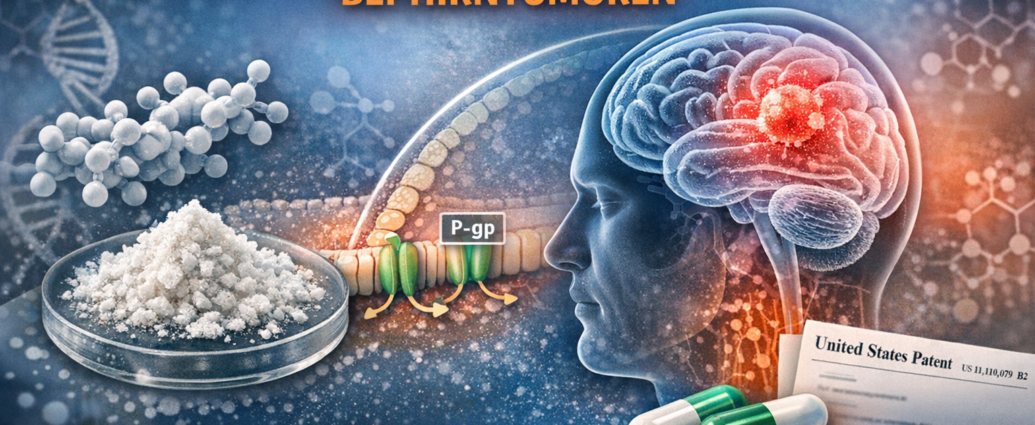Americký patent USA 11 110 079 B2 (vydáno dne 7. září 2021) popisuje velmi specifický přístup „repurposing“: dobře známá účinná látka anthelmintikum Mebendazol se ne jen „off-label“, ale v definovaná krystalová forma (polymorf C) a v specifický galenický přípravek (granulovaný) se zaměřením na Nádory mozku a volitelné kombinované strategie.