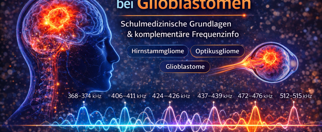 Für die Frequenztherapie eröffnet das Thema Glioblastom zusätzlich eine komplementäre Perspektive. Die in der Literatur beschriebenen Resonanzfrequenzen bilden eine strukturierte Frequenzinfo, die innerhalb der Informationsmedizin ergänzend betrachtet werden kann. Besonders markant sind die Cluster zwischen 406 und 451 kHz sowie die höheren Bereiche zwischen 512 und 558 kHz.