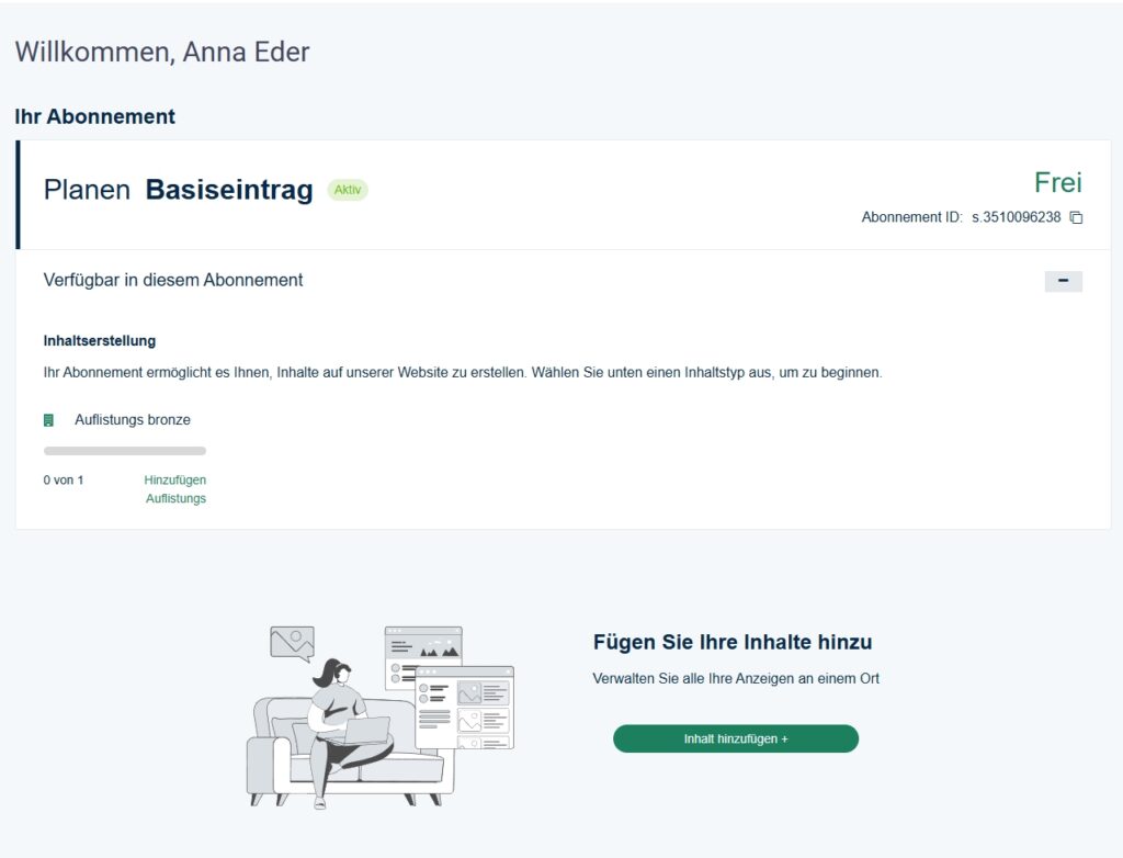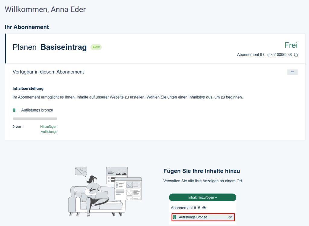 Wenn Du den Basiseintrag ausgewählt hast, gelangst Du zum Bronze-Abo. Bestätige einfach mit „Inhalt hinzufügen“.